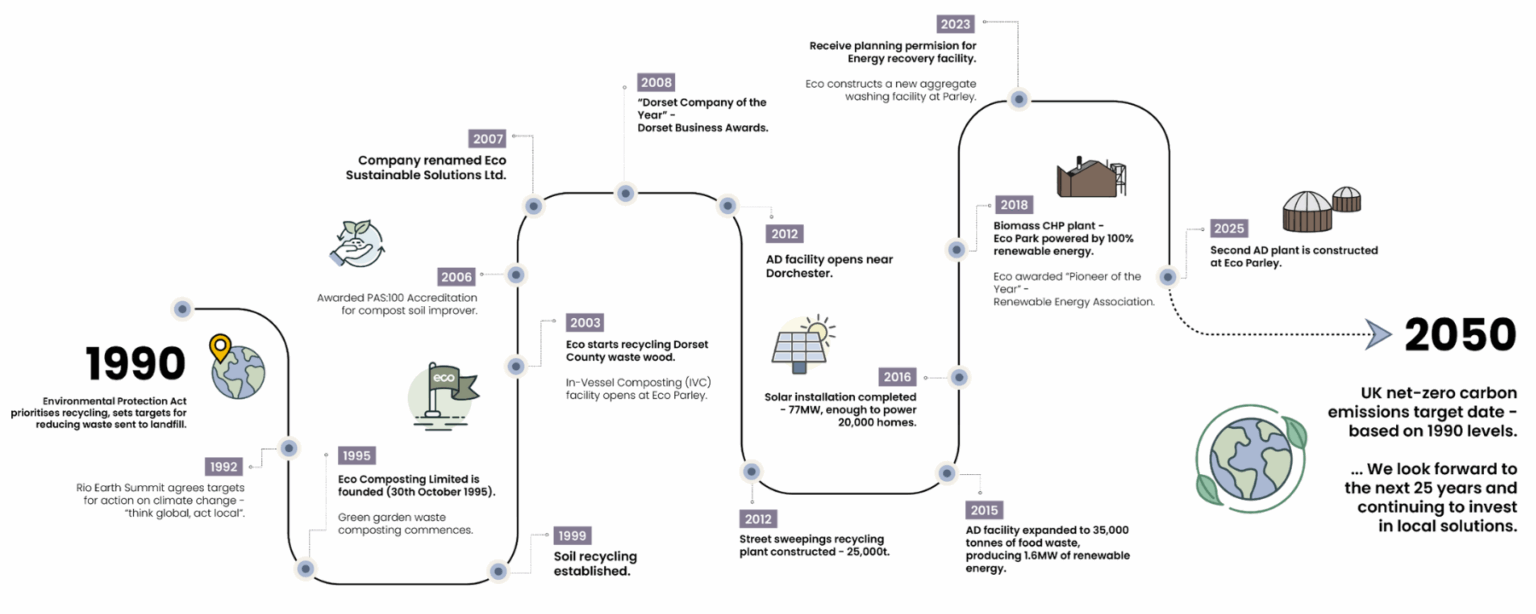 Over the past 30 years, Eco has led a variety of sustainable projects from organic waste recycling, producing green power from food waste to developing, at the time, the largest Solar Farm in Europe.